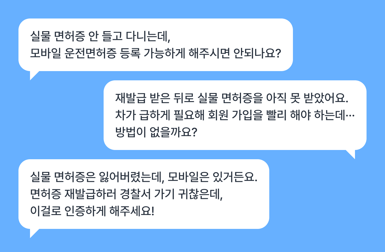 실제로 모바일 운전면허 인증 기능을 도입해달라는 회원들의 목소리도 컸다고요.