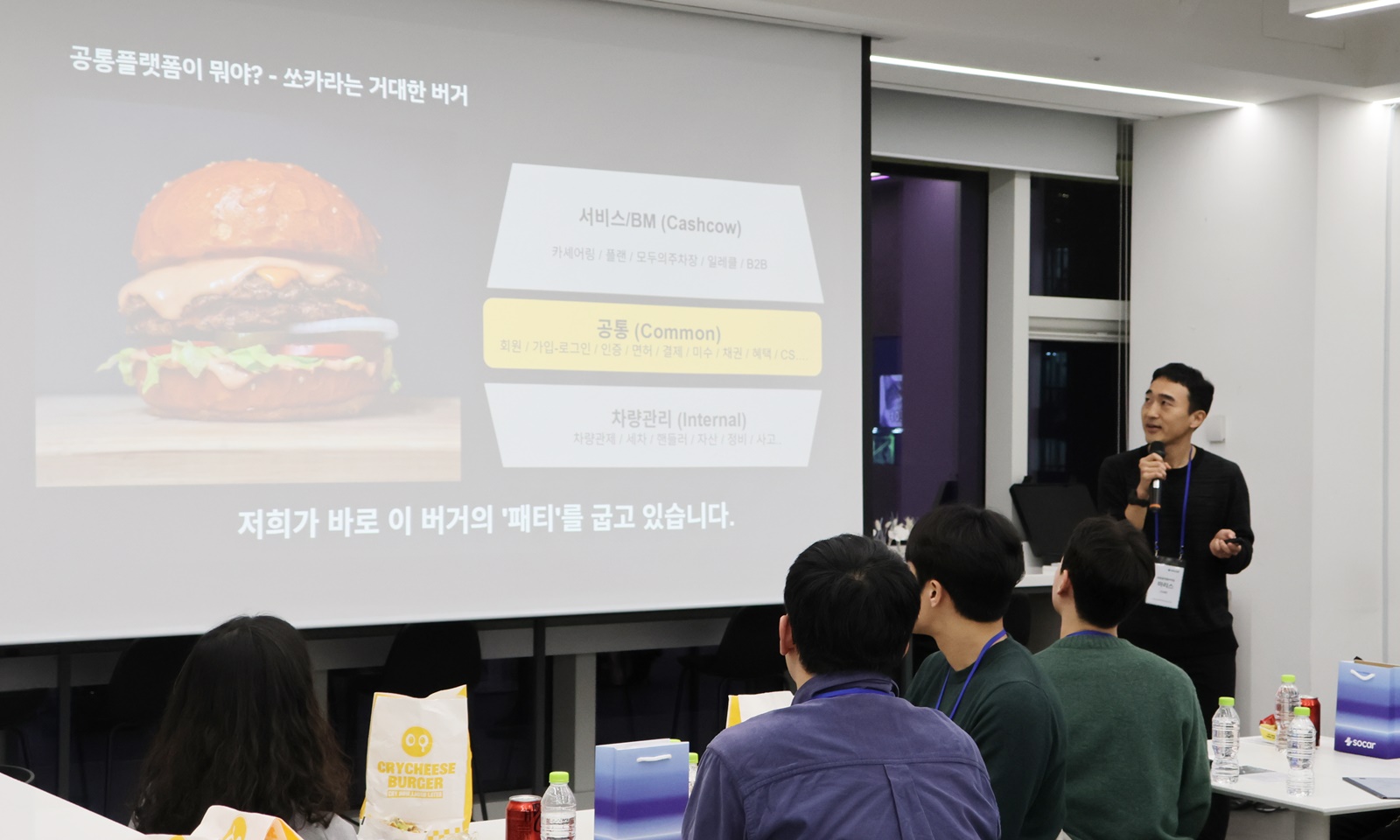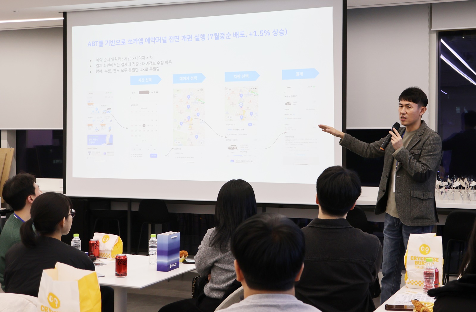 이번 디너톡의 핵심이었던 세션 발표에서는 각 팀이 쏘카 서비스의 주요 영역에서 어떤 고민을 하고, 어떻게 문제를 해결해나가는지 구체적인 데이터를 바탕으로 설명했습니다.